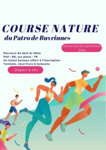 Nous sommes ravis de vous annoncer la toute première édition de notre Course Nature, organisée par le Patro de Buvrinnes !