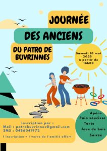 Cette année, nous voulions retrouver nos anciens lors d’une journée chaleureuse. Nous vous proposons de bloquer votre journée du 10 mai pour venir boire un verre, discuter des vos années patro et manger un pain saucisse tout en profitant des jeux en bois !